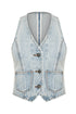 A fitted silhouette vest made of heavy denim, featuring pockets and branded hardware