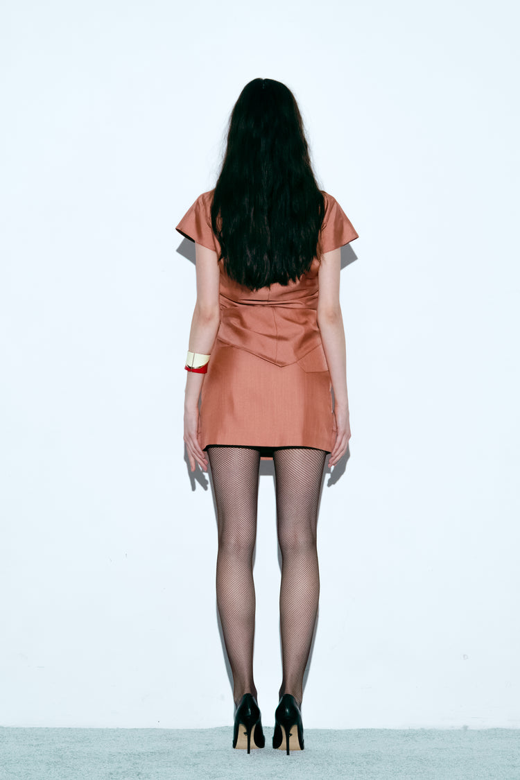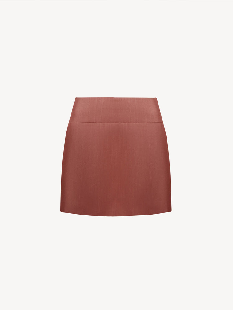 Straight-cut mini skirt with a high waist and a zipper closure.