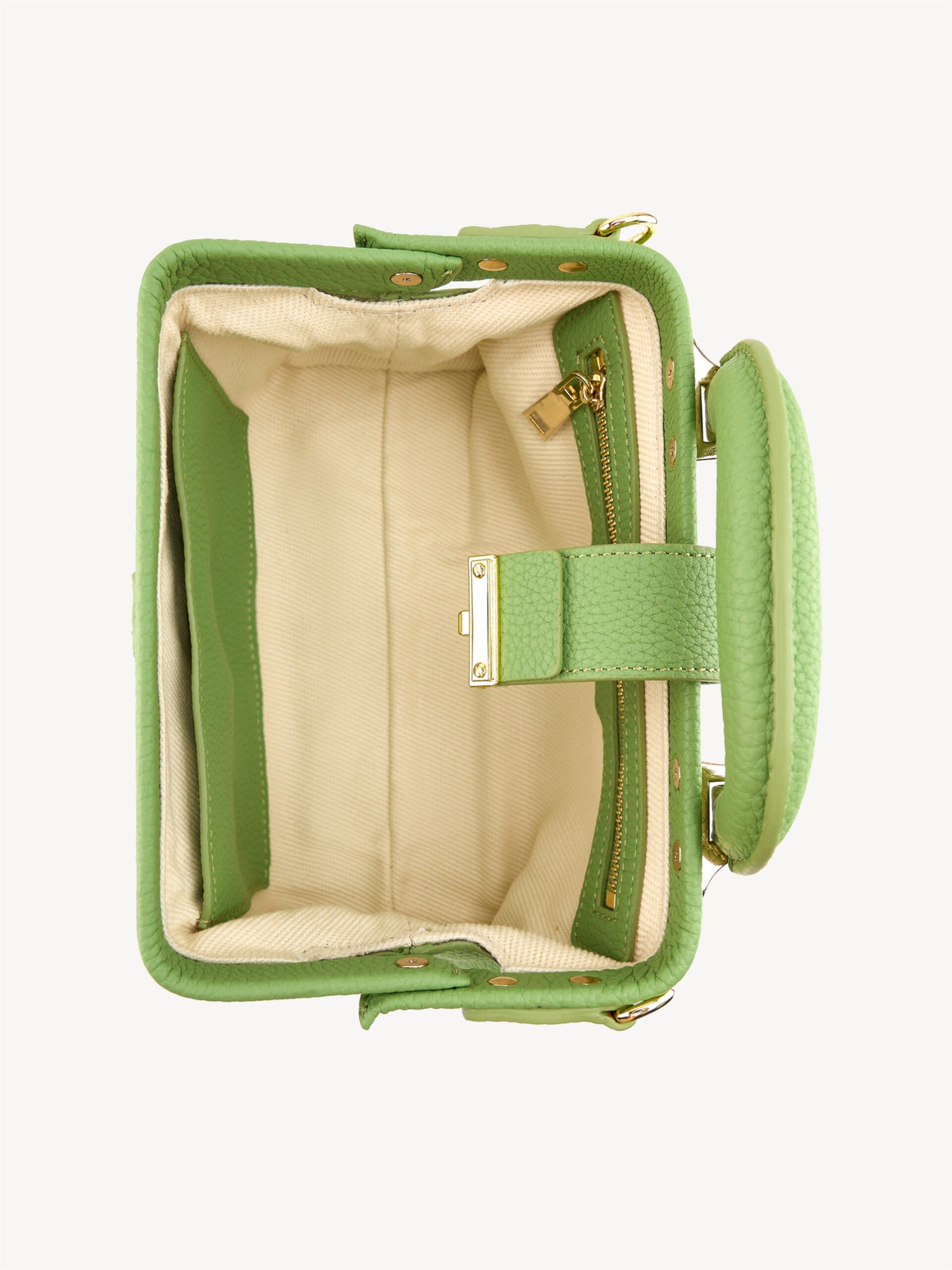 Gold tone hardwearing bag, perfectly crafted with soft leather. Features a detachable strap that allows for added versatility.