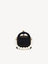 Mini bag with closure. Gold-tone hardware, detachable leather strap, detachable pearls.