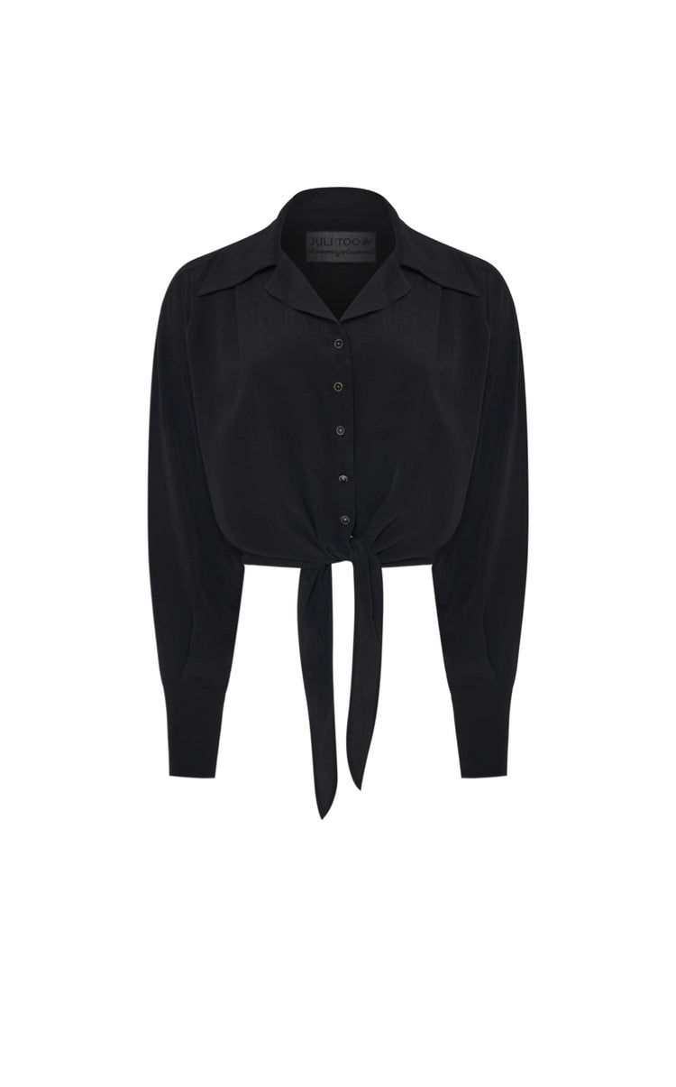 Straight-cut silk blouse with ties