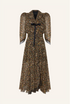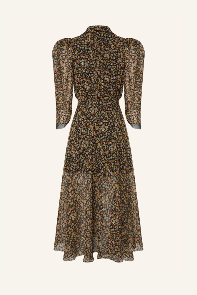 Midi dress trimmed with silk lace, featuring a statement satin bow at the neckline