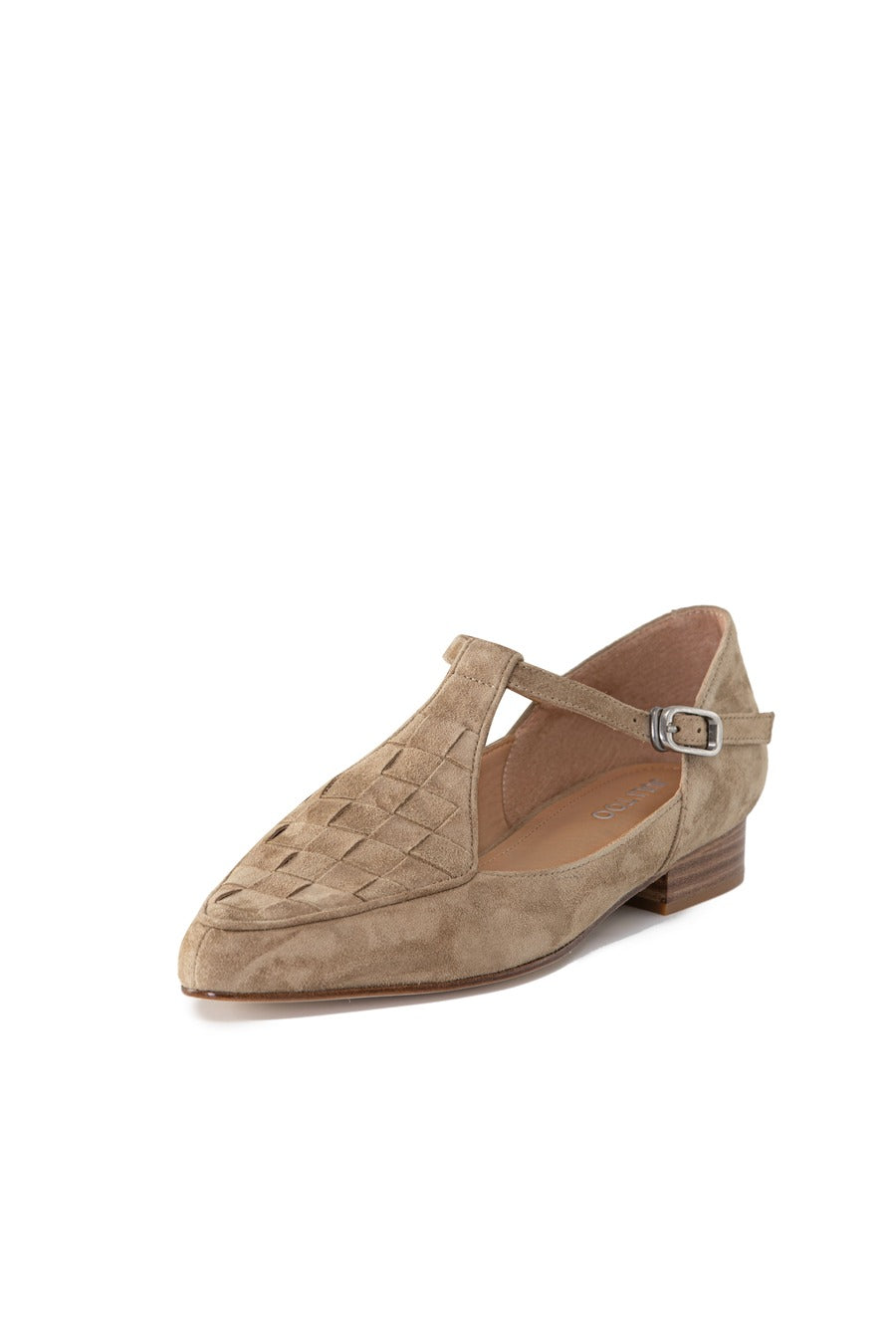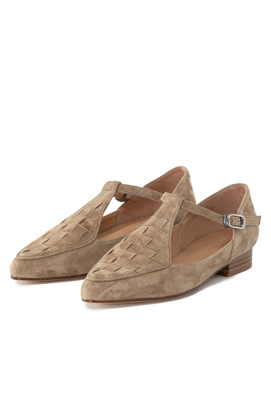 Oval-toe silhouette loafers with adjustable fastening and weaving on the rise