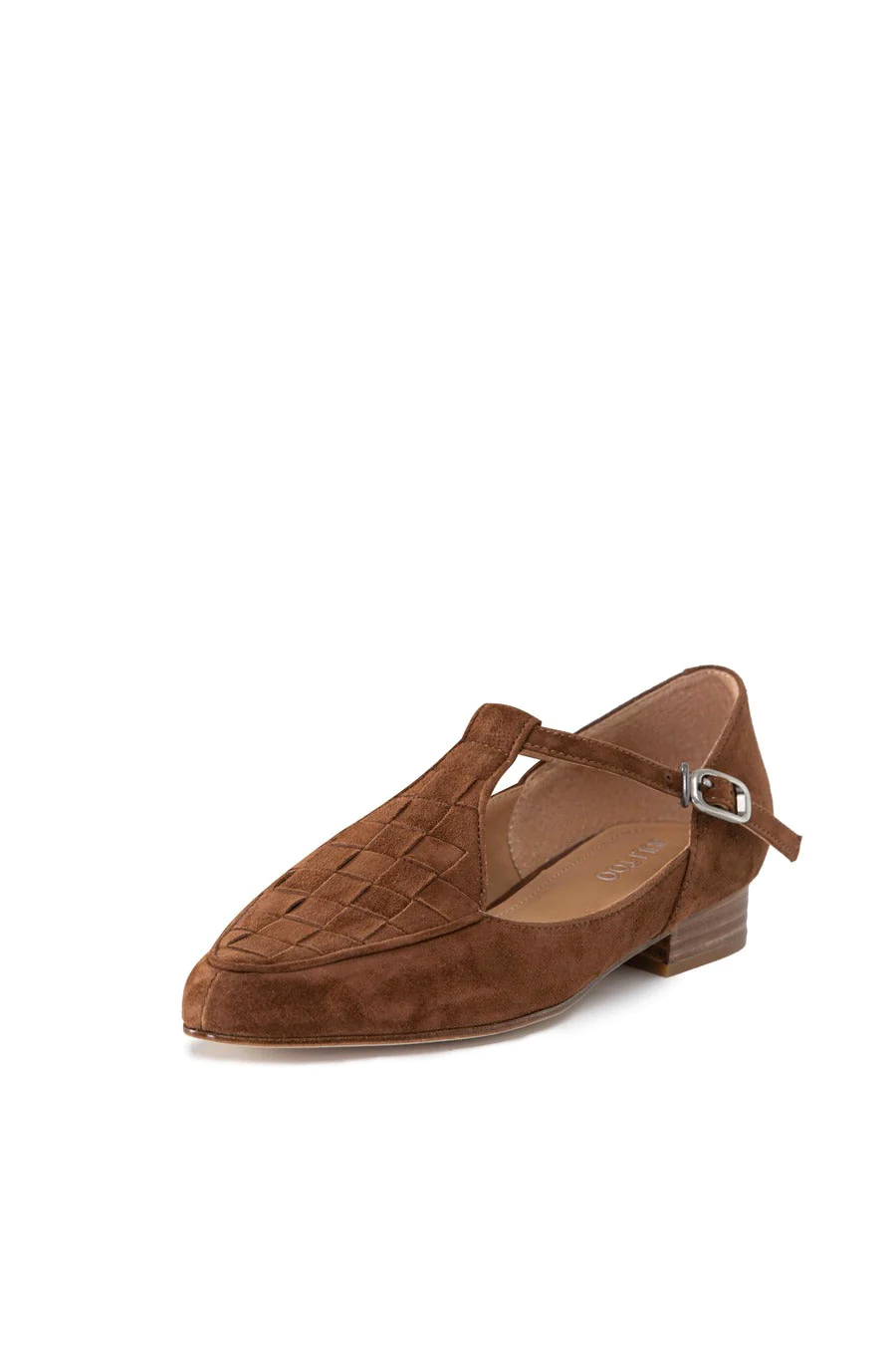 Oval-toe silhouette loafers with adjustable fastening and weaving on the rise