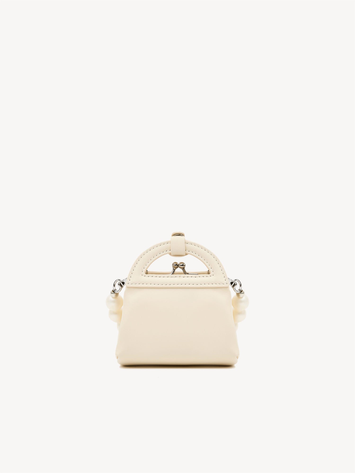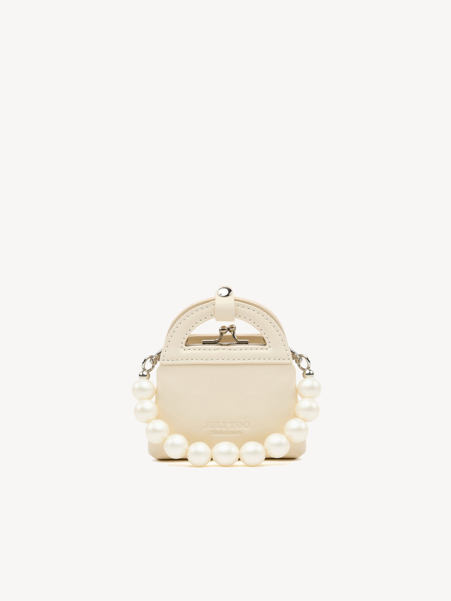 Mini bag with closure. Silver-tone hardware, detachable leather strap, detachable pearls.