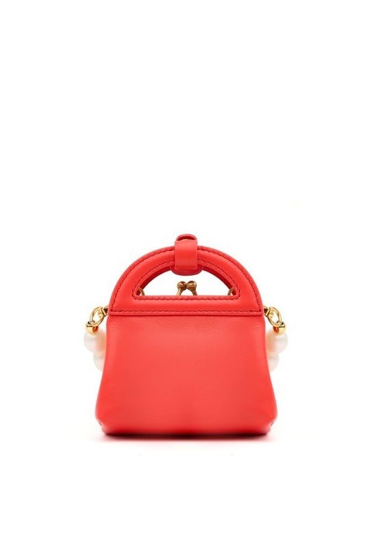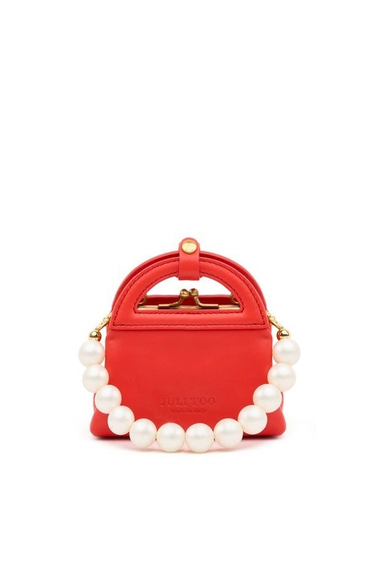 Mini bag with closure. Gold-tone hardware, detachable leather strap, detachable pearls.