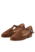 Oval-toe silhouette loafers with adjustable fastening and weaving on the rise