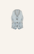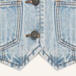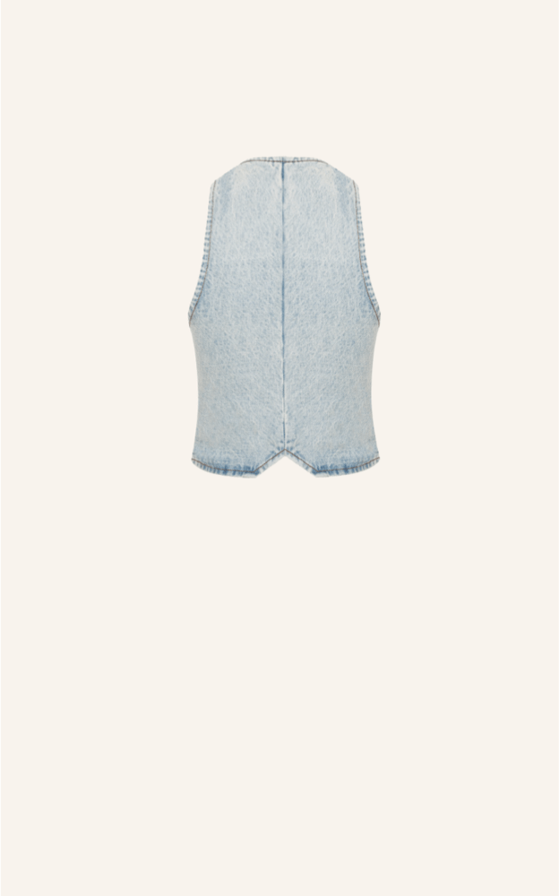 A fitted silhouette vest made of heavy denim, featuring pockets and branded hardware