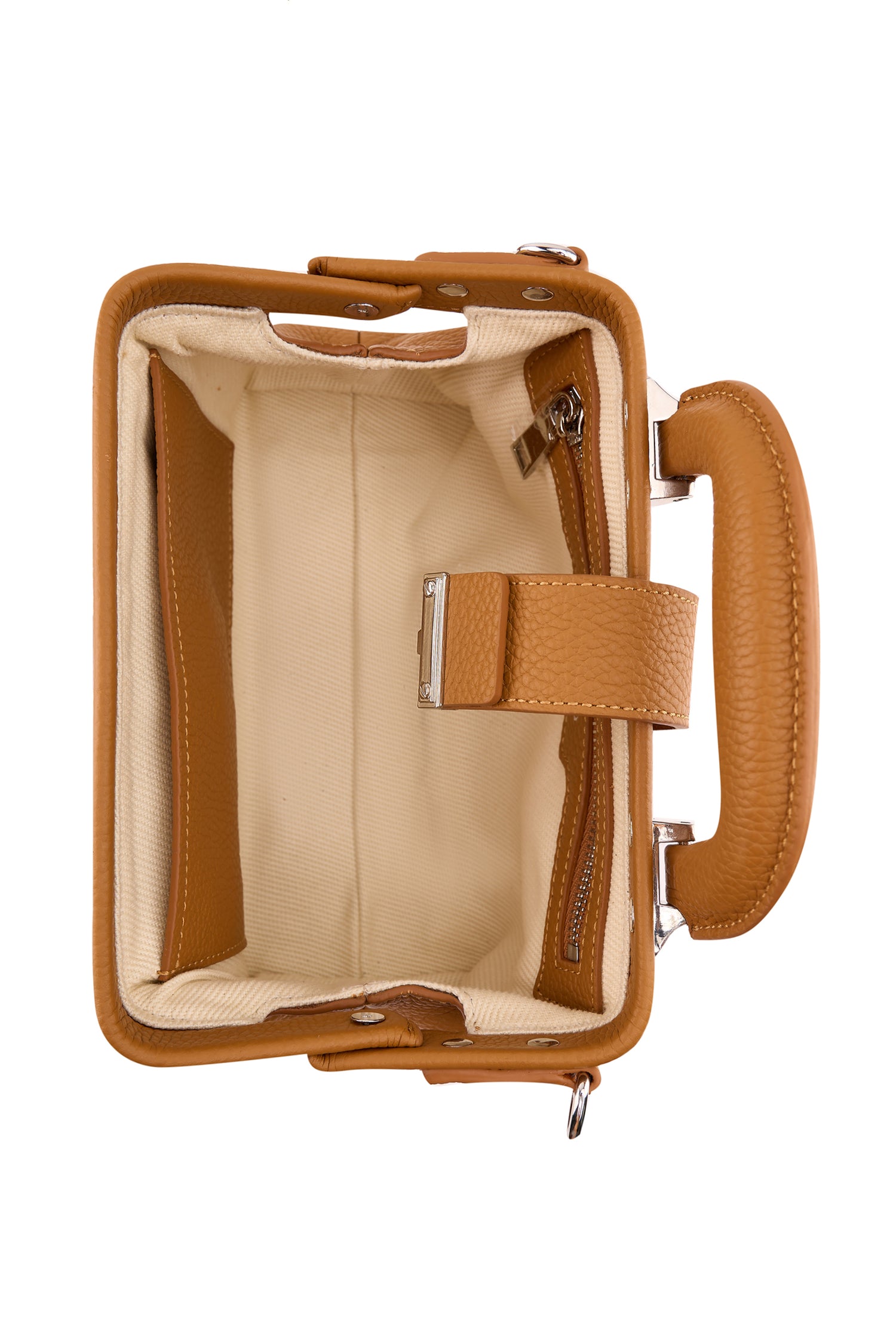 Durable mini handbag, features a detachable strap that allows for added versatility.