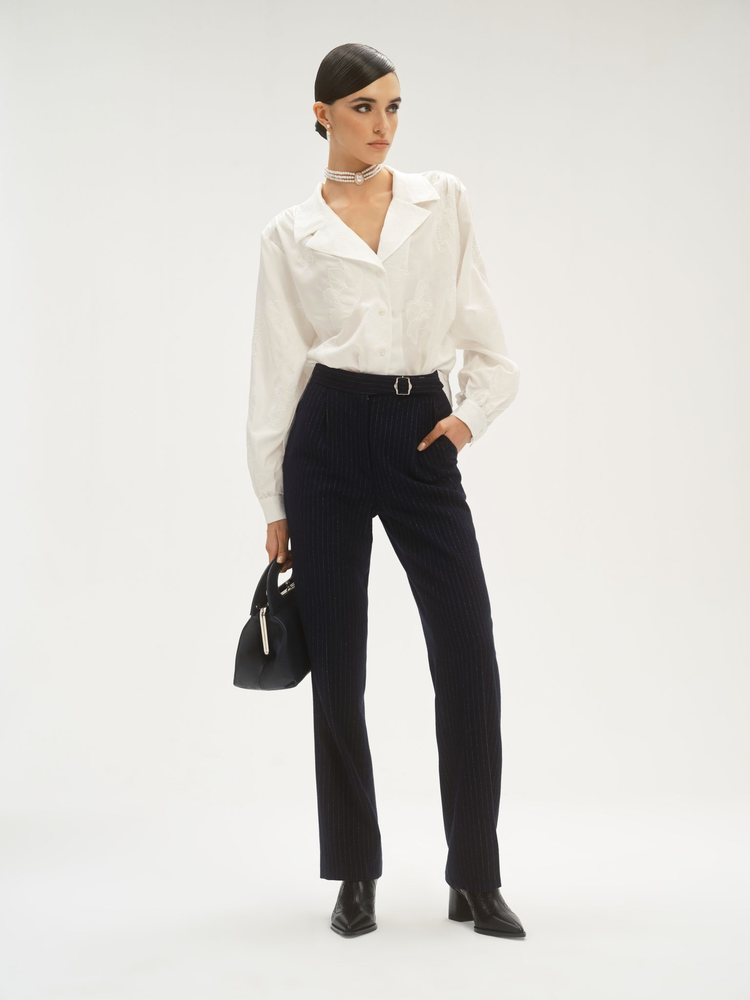 Mid-rise trousers with tapered bottom and Belt with branded fittings