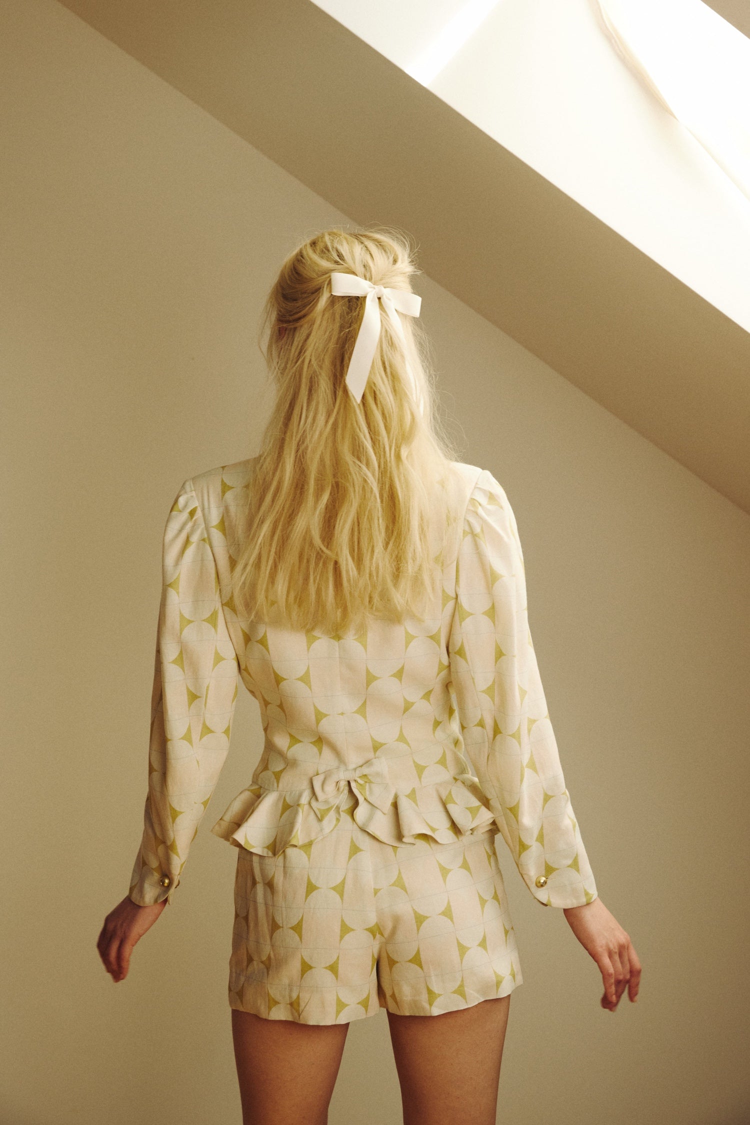 Fitted cotton jacket with ruffles and decorative elements