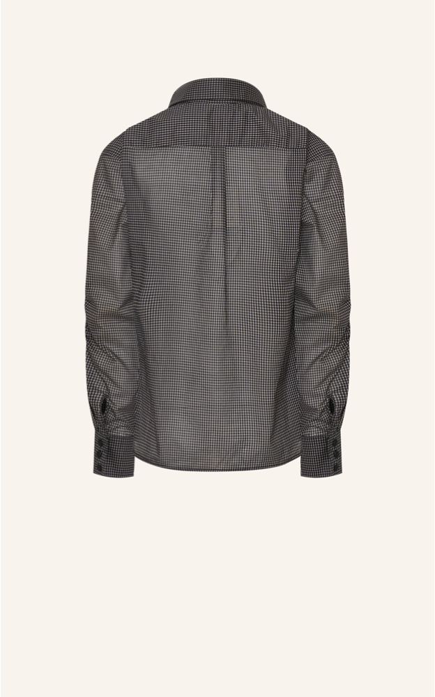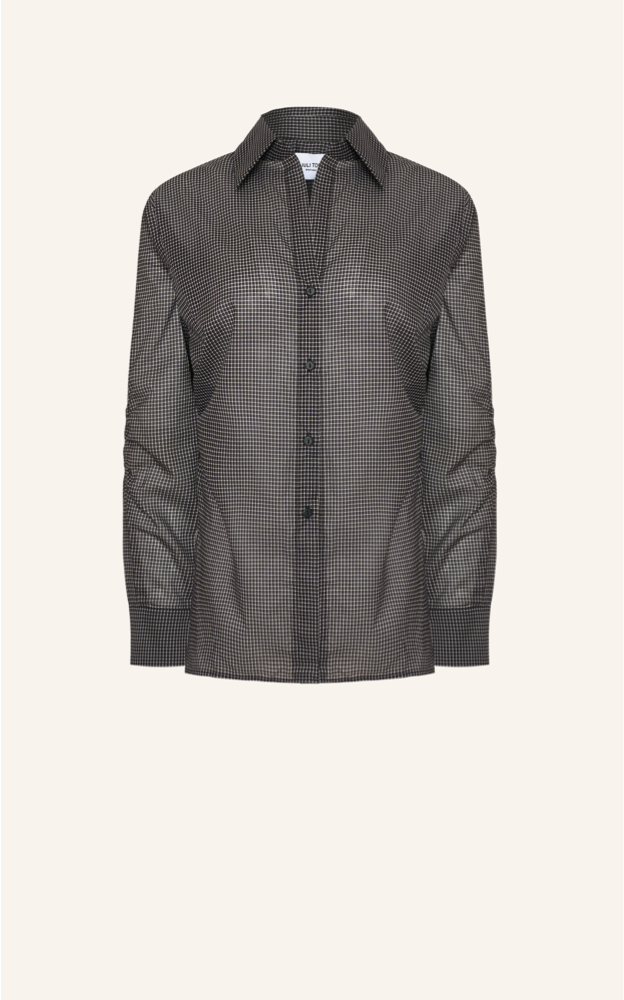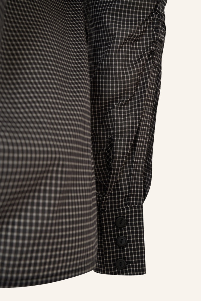 Straight-cut shirt with decorative gathers on the long sleeves and slits on the sides