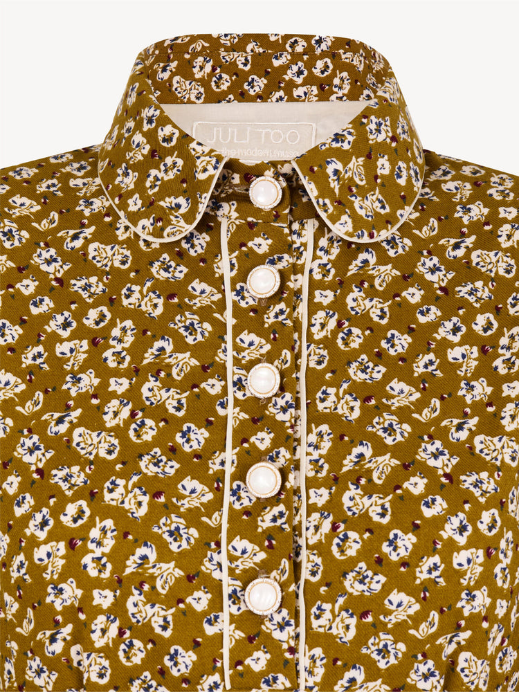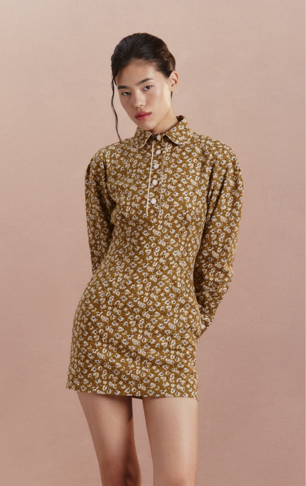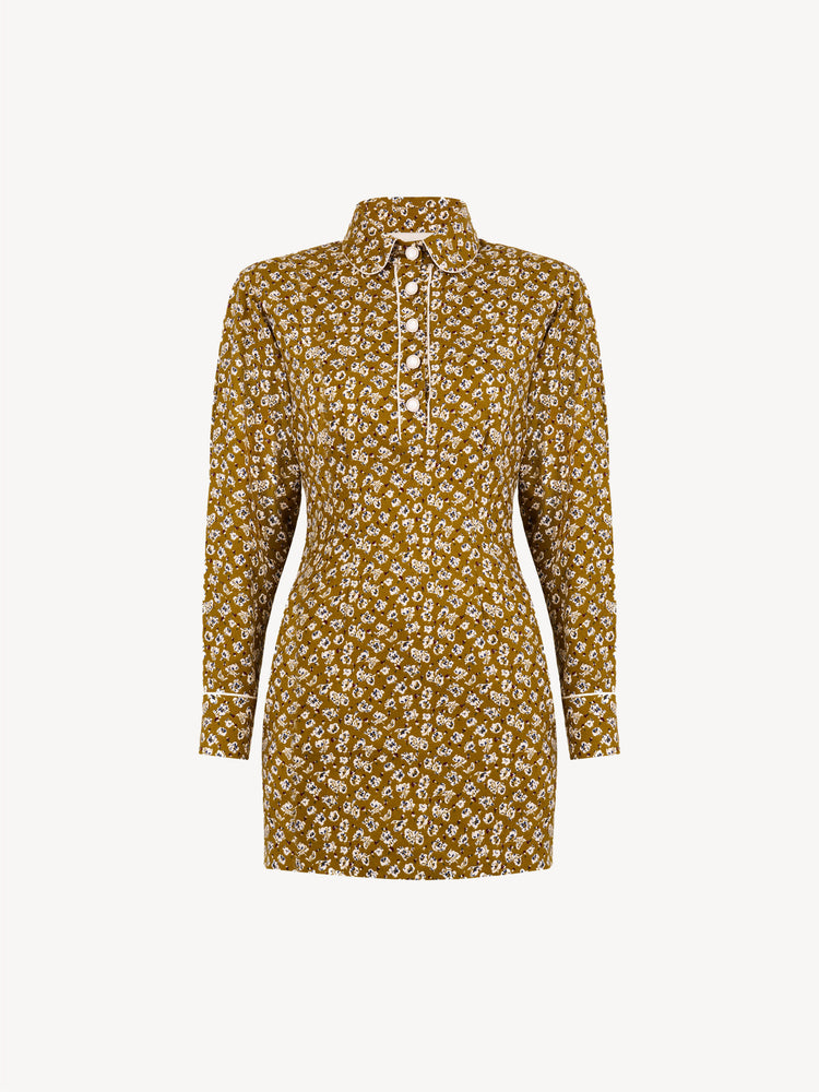 Mini sheath dress with long sleeves, cuffs, and a collar