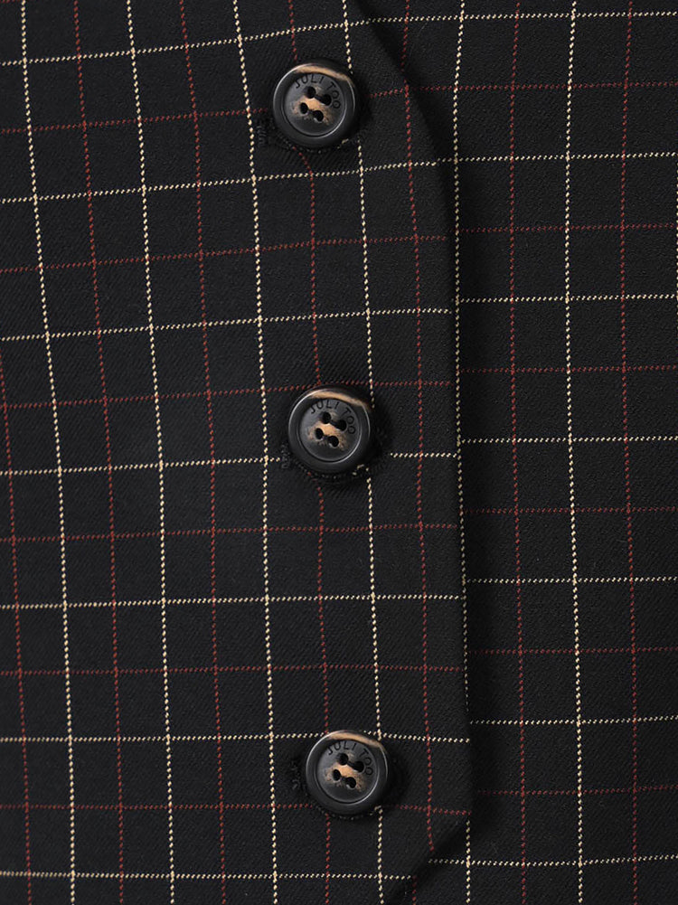 Cropped wool vest, fitted silhouette with V-neck, fastened with branded buttons.
