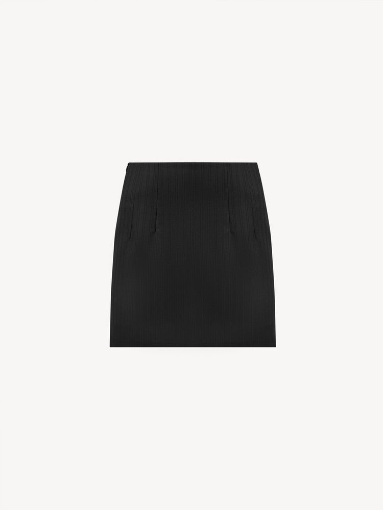 A straight-cut mini skirt with a waist fit and a zipper closure.