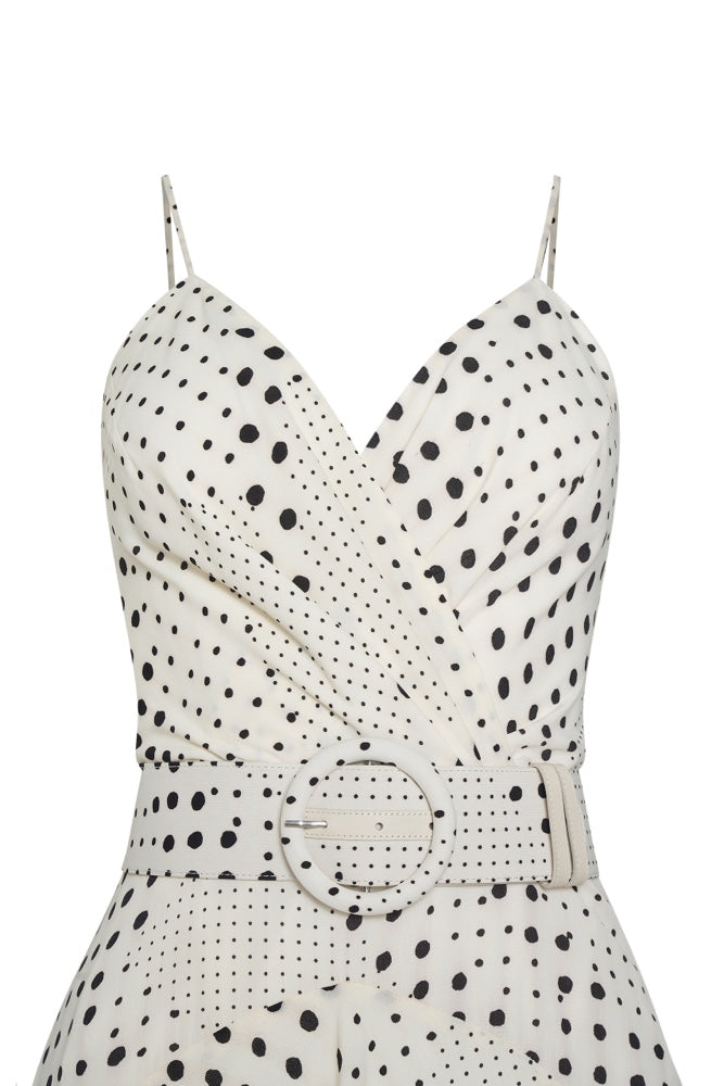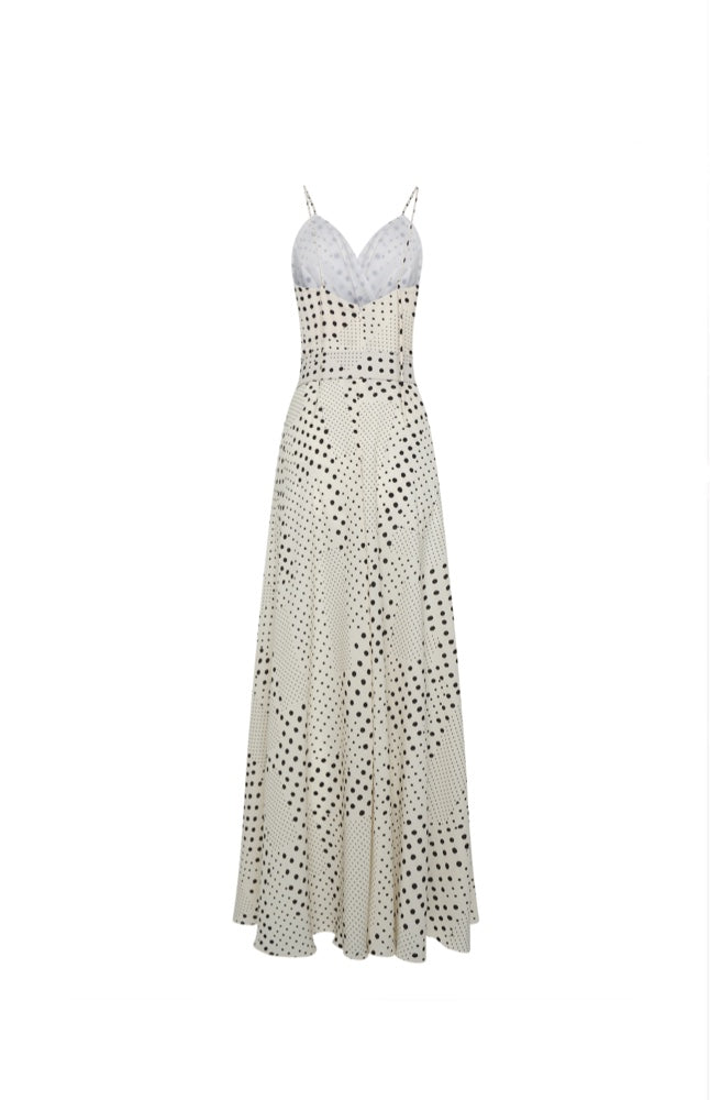 Maxi dress with straps, A-line skirt, zipper closure, and a leather belt included